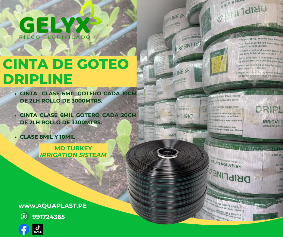 | CINTA DRIPLINE 16MM C-6MIL, 10 CM, 2L/H 3000 MTRS |